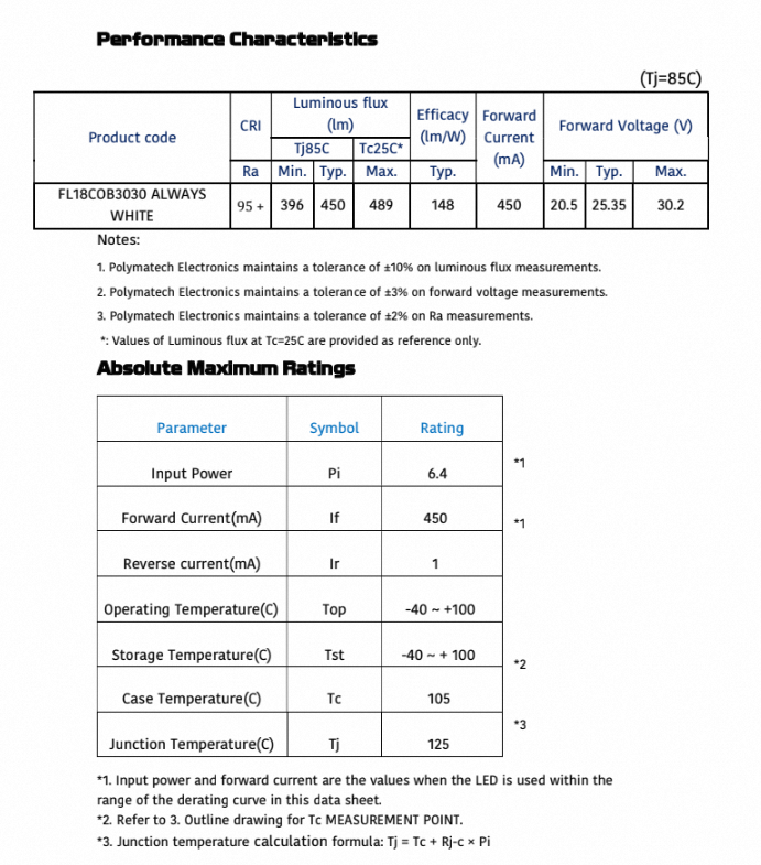 Polymatech FL18COB3030 Standard COB Series Always White 95+ CRI LED Architectural Lighting Bright Long Life Commercial