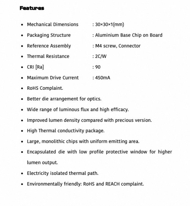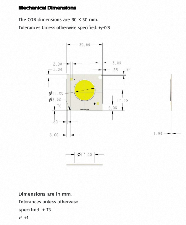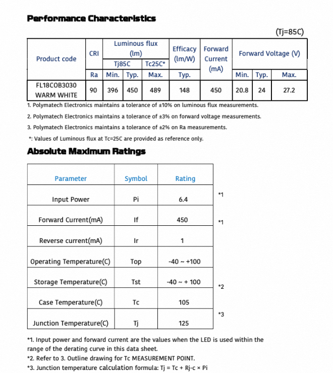 Polymatech Standard COB Series FL18COB3030 Warm White 90 CRI LED Commercial & Office Lighting Providing Superior Color Accuracy