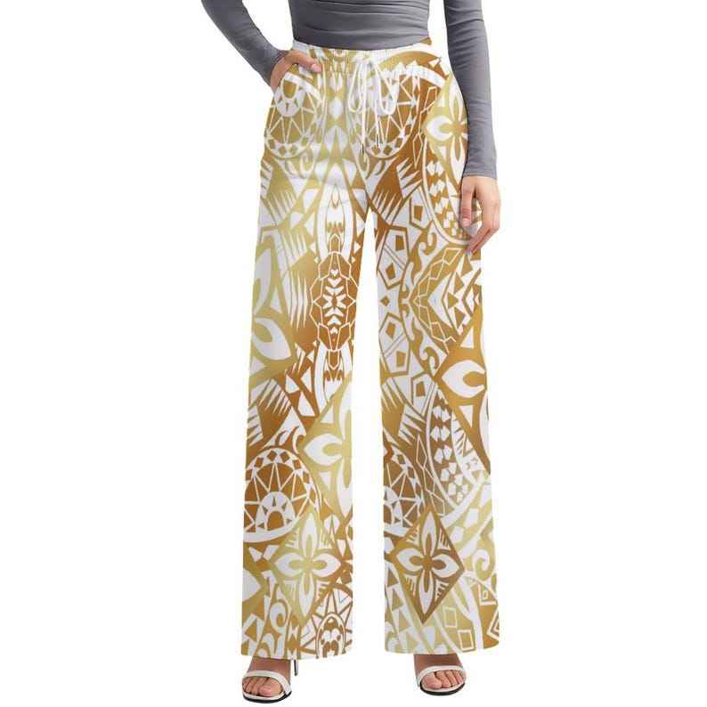 Polynesian Hawaii Tribal Print Womens Beach Pants Custom Fashion Long Wide Leg Loose Trousers