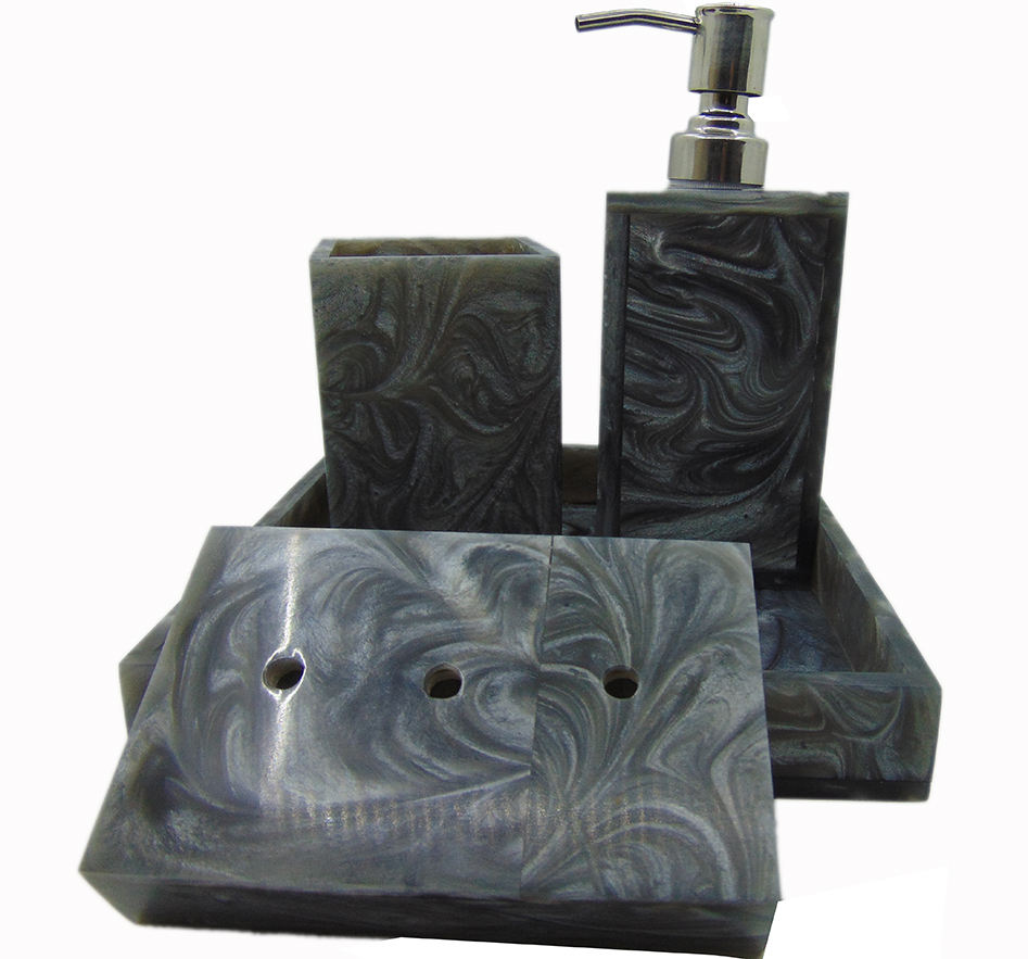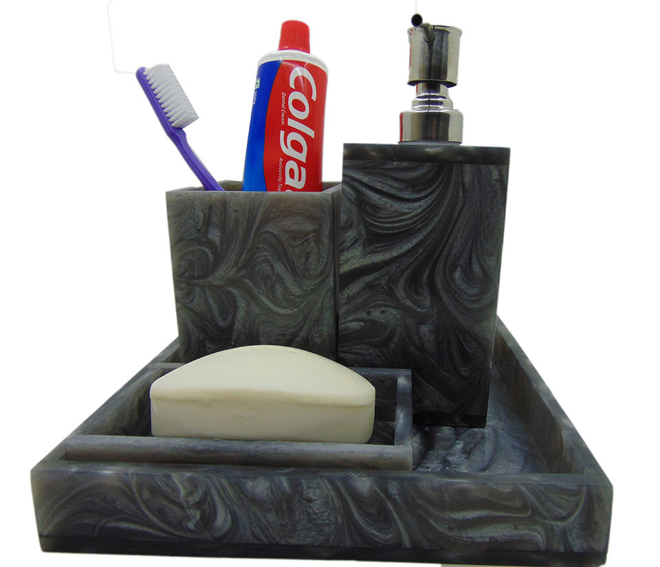 Polyresin 4 Pieces Bathroom Set-Dispenser Toothbrush Holder, Tumbler & Soap Dish