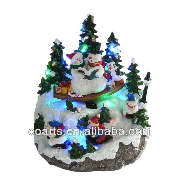 Polyresin Christmas LED House With Santa, Kids & Rolling Water Mill Arvore De Natal Papa Noel Indoor Home Navidad Crafts
