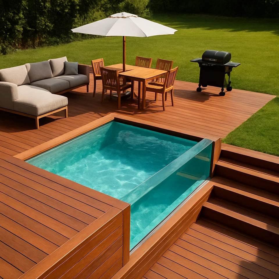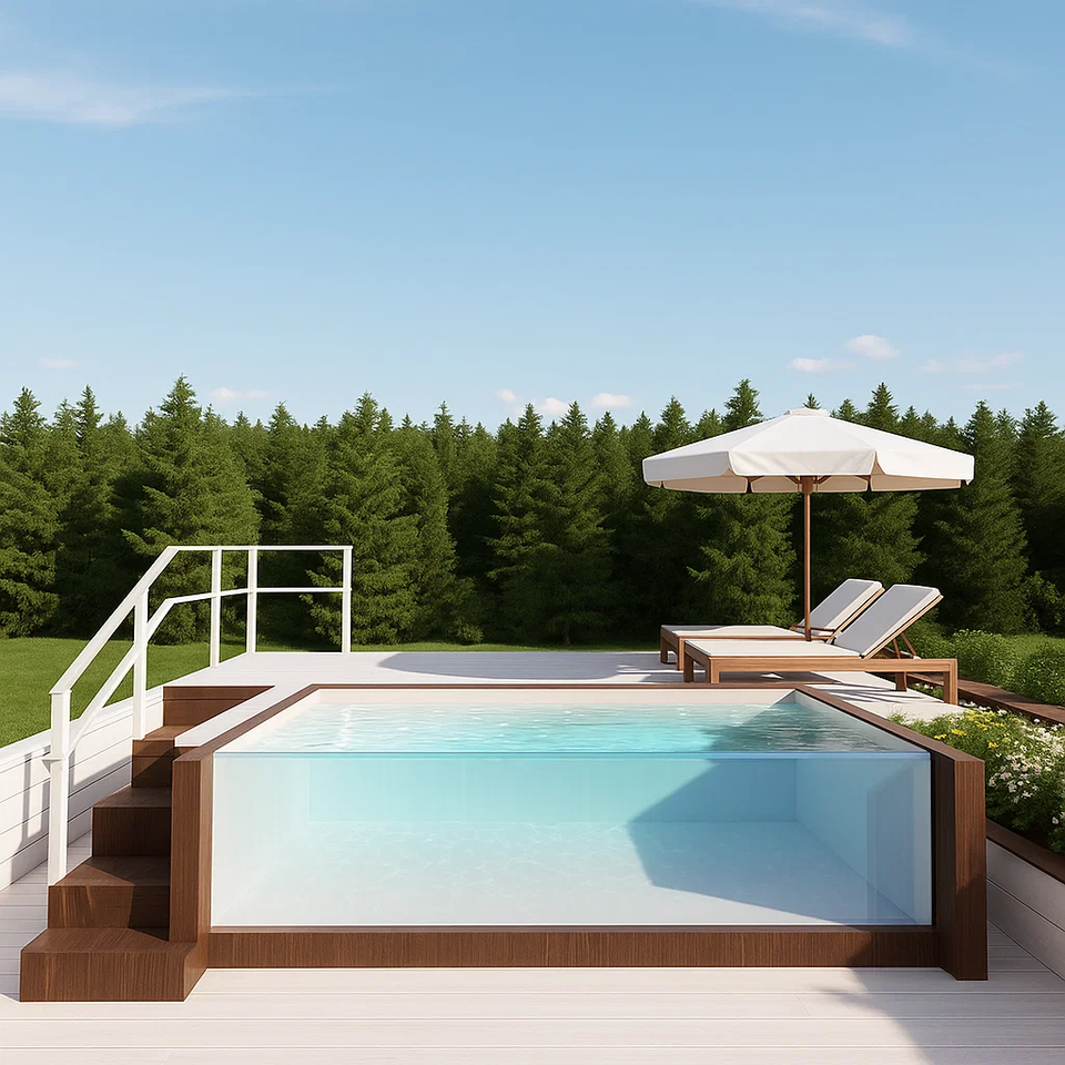 Backyard Wooden Fiberglass Acrylic Jacuzzi Spa Outdoor Ground Swimming Pool Piscina Window Mosaic Tiles Plunge