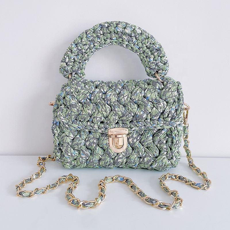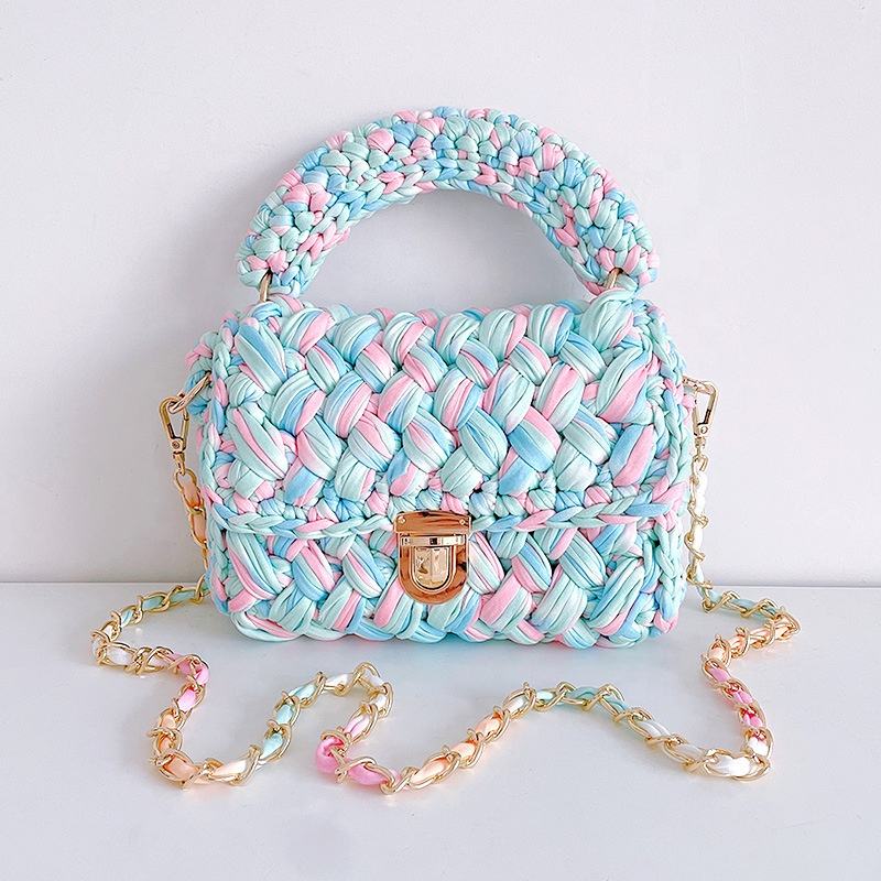 Popular Beach Bag Ladies Hand Bags Hand Crochetbbag for Women T Shirt Yarn Crochet Knitted Handmade Striped Crochet Crochet Bag