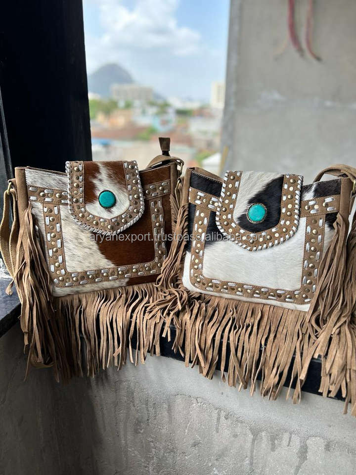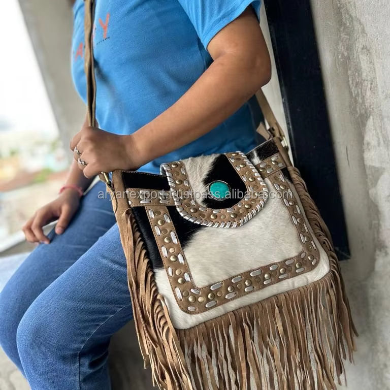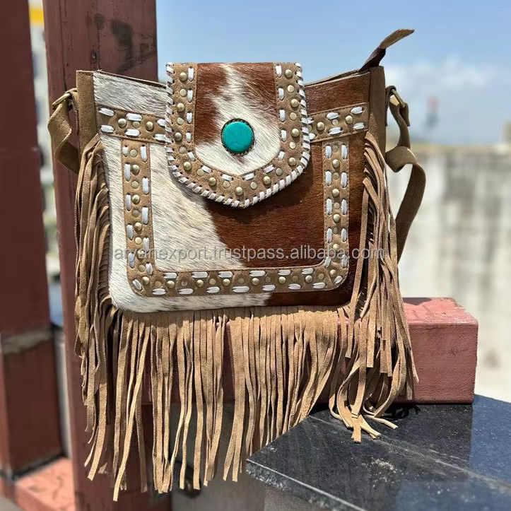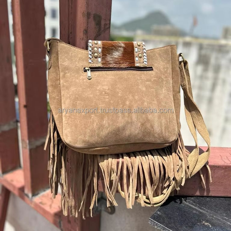 Popular Brand 2025 Unique Stylish Wholesale Leather Bag Suede Leather Stone Fringed Shoulder Crossbody Bag on Best for Woman
