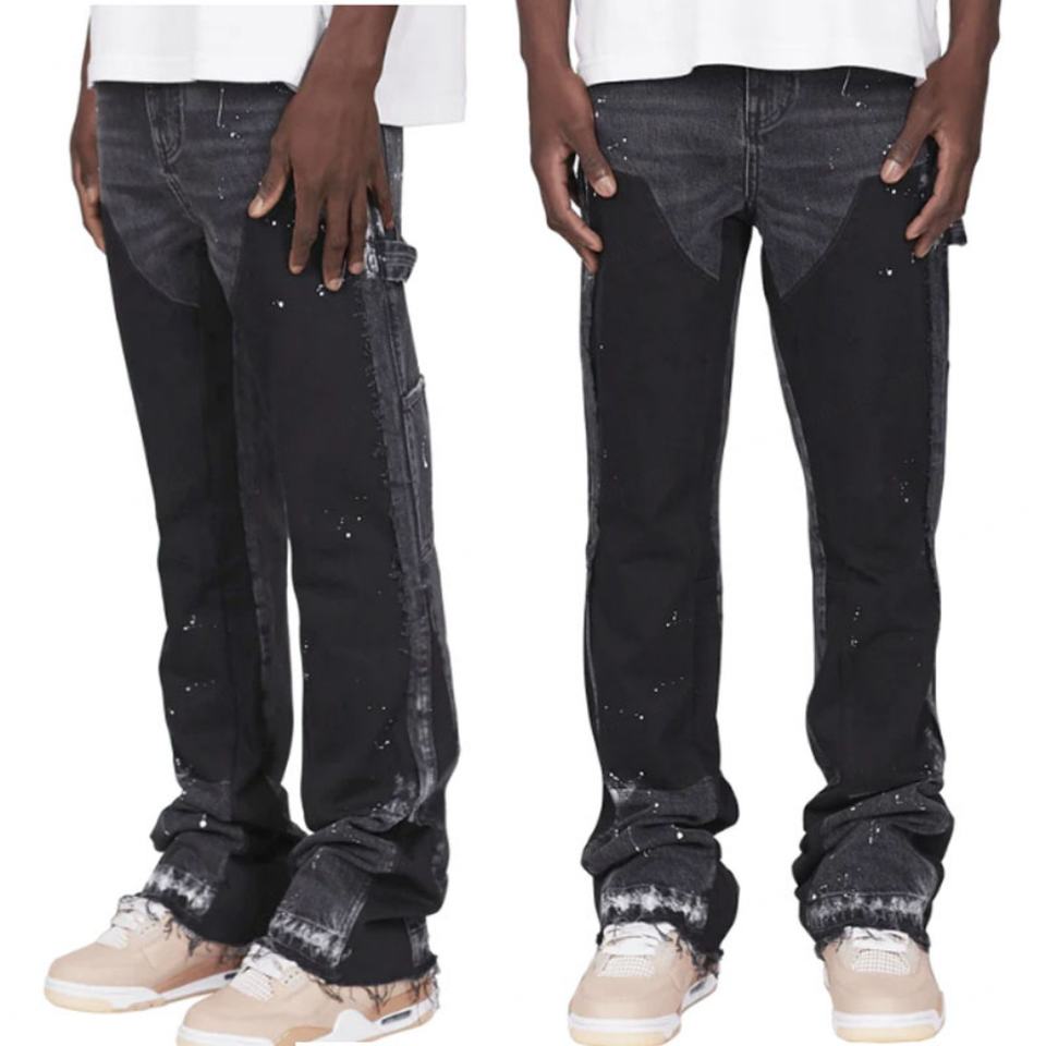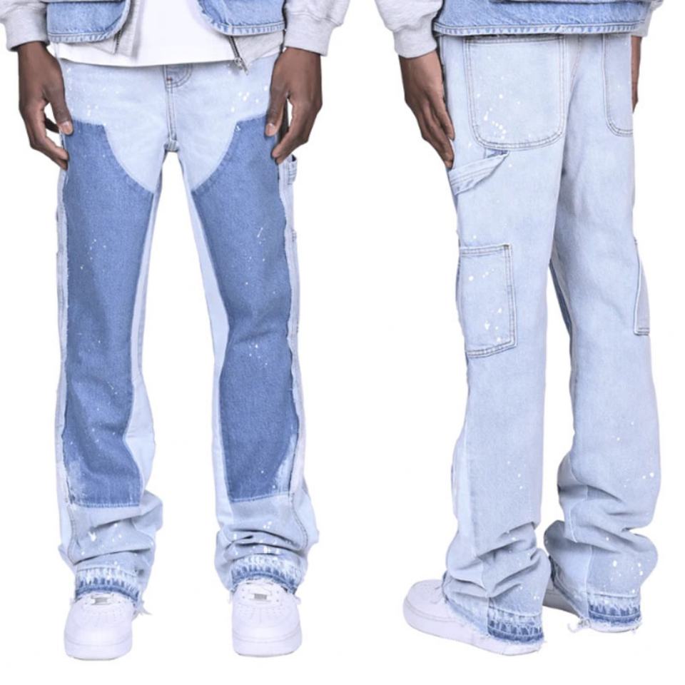 Popular Brand Jeans Customize Paint Splatter Washed Carpenter Pants Stacked Flared Jeans Men