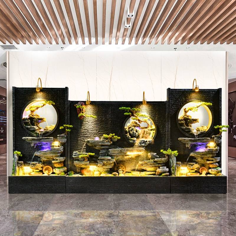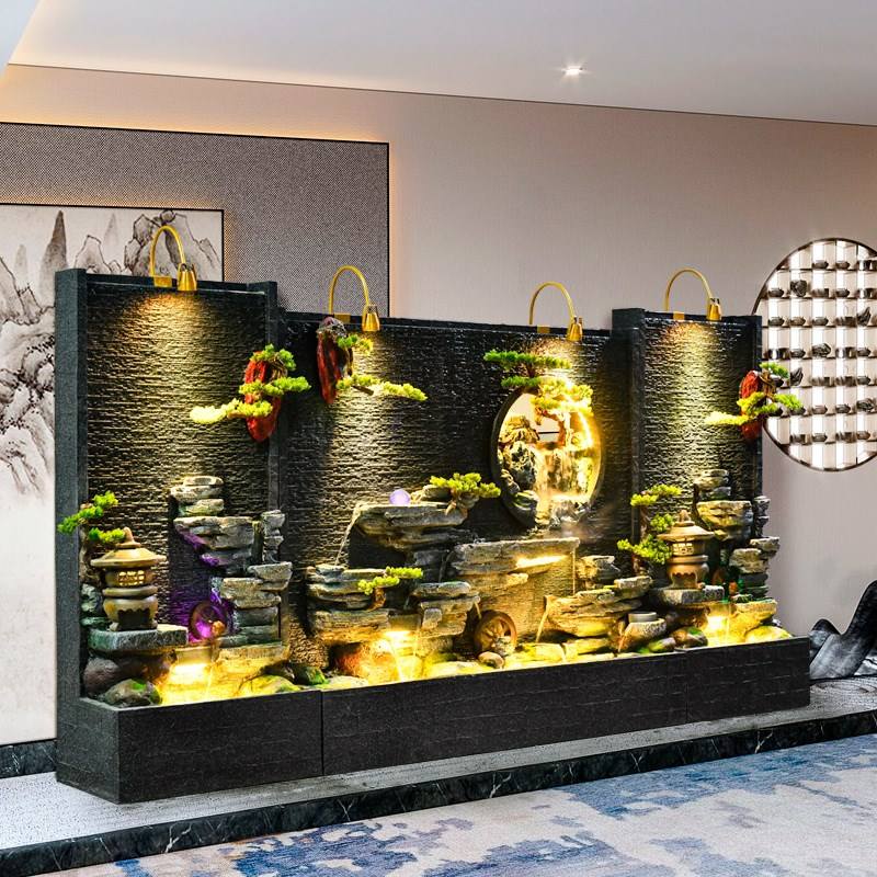 Chinese-Style Water Curtain Wall Running Fish Pond Resin Screen Partition Porch Rockery Fountain Feng Shui Landscape Model