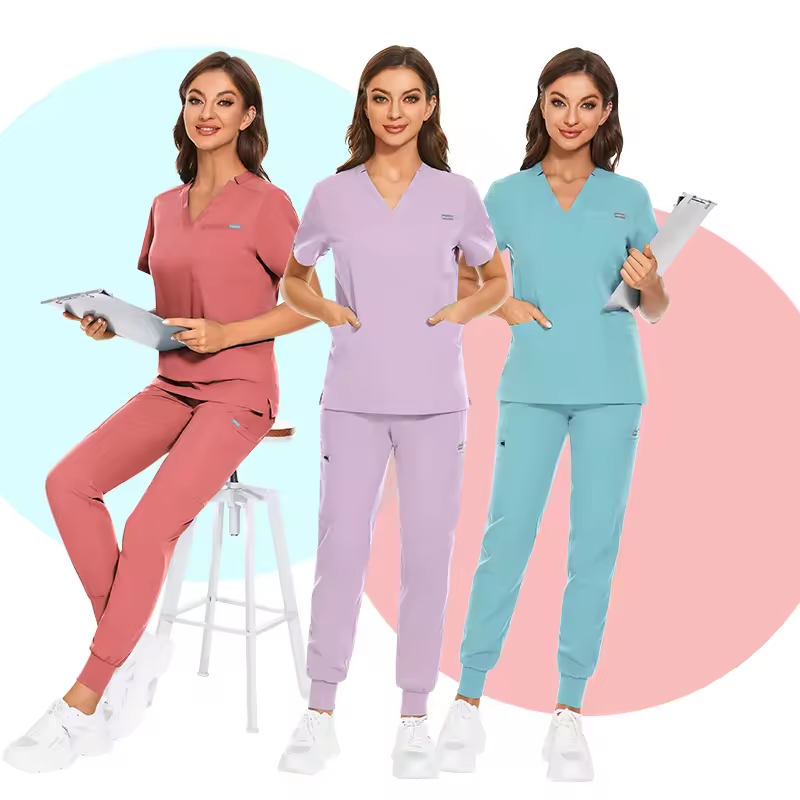 Popular Comfortable Thick Summer Style Nurse Uniform Sets for Unisex Spandex Stretch Scrub Jacket Uniforms Nursing Scrubs Sets