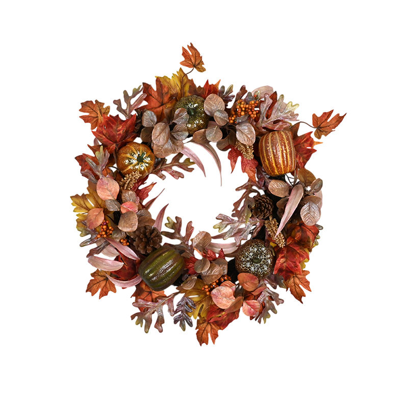 Popular Customized Harvest Decoration Fall Pumpkin Autumn Wreath Round Maple Leaf Wreaths