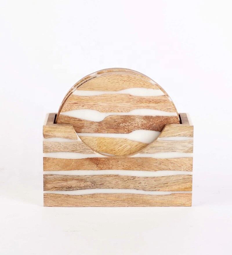 Popular Design Wood And Resin Coaster Shiny Polished Round Shaped 4 Pieces Set Handmade top Sale