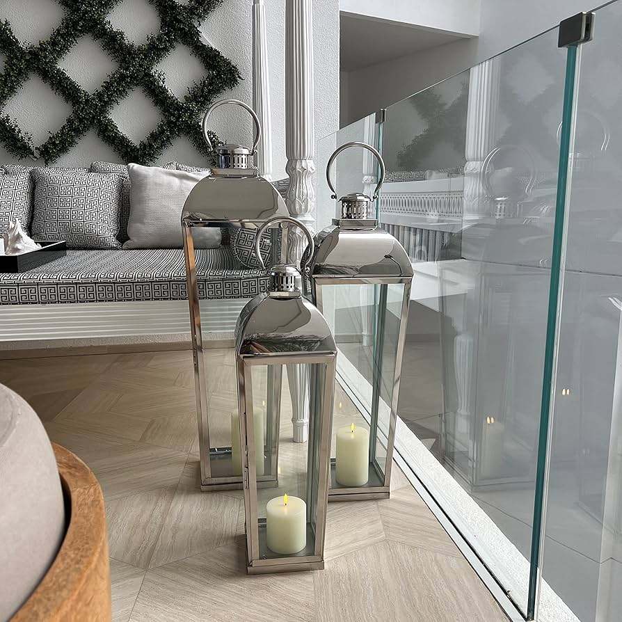 Modern Silver Large Metal Square Candle Holder Handmade Pillar Lanterns for Home Garden and Wedding Decorations Christmas