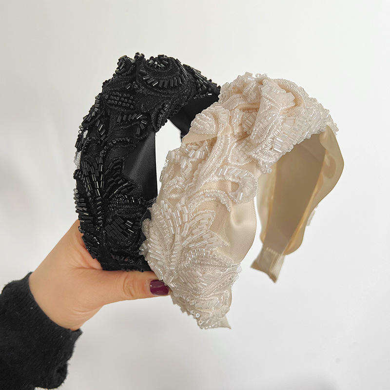 Popular Fabric Bright Face Bead Wide Edge Accesorios Para Mujer Light Luxury Retro Tie Hairbands for Girl Hair Bands for Women