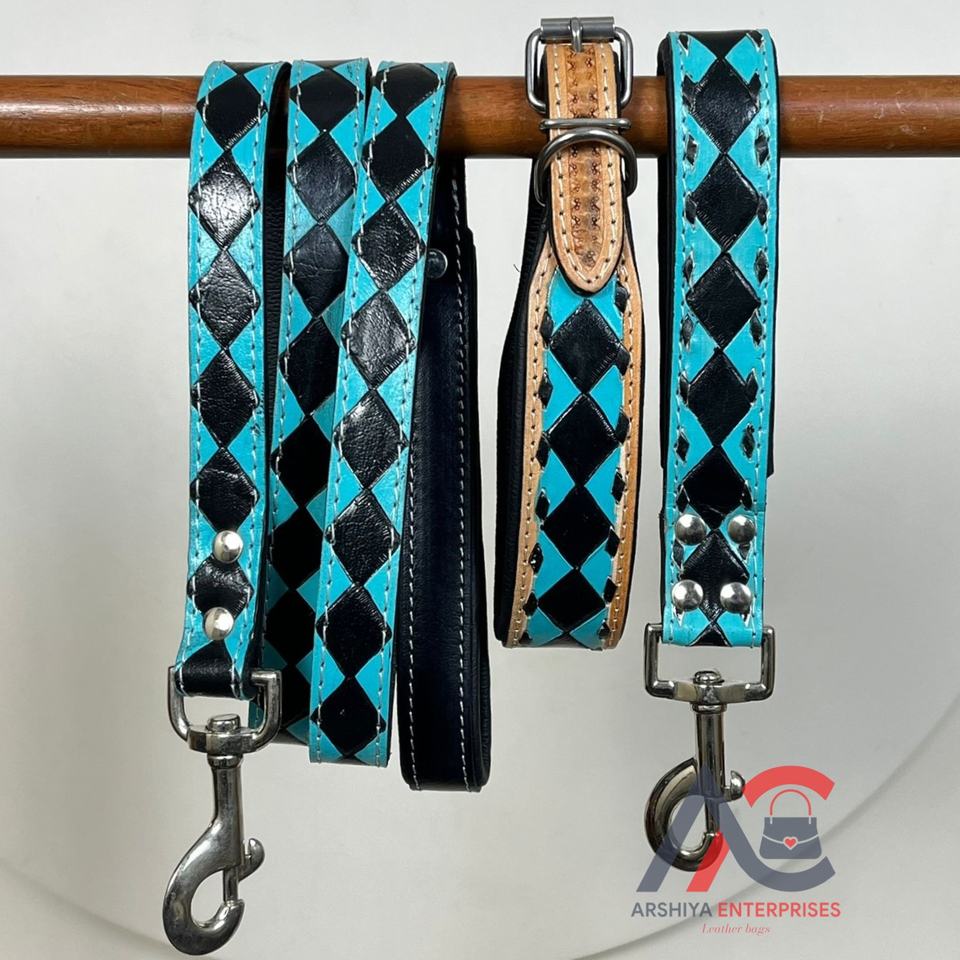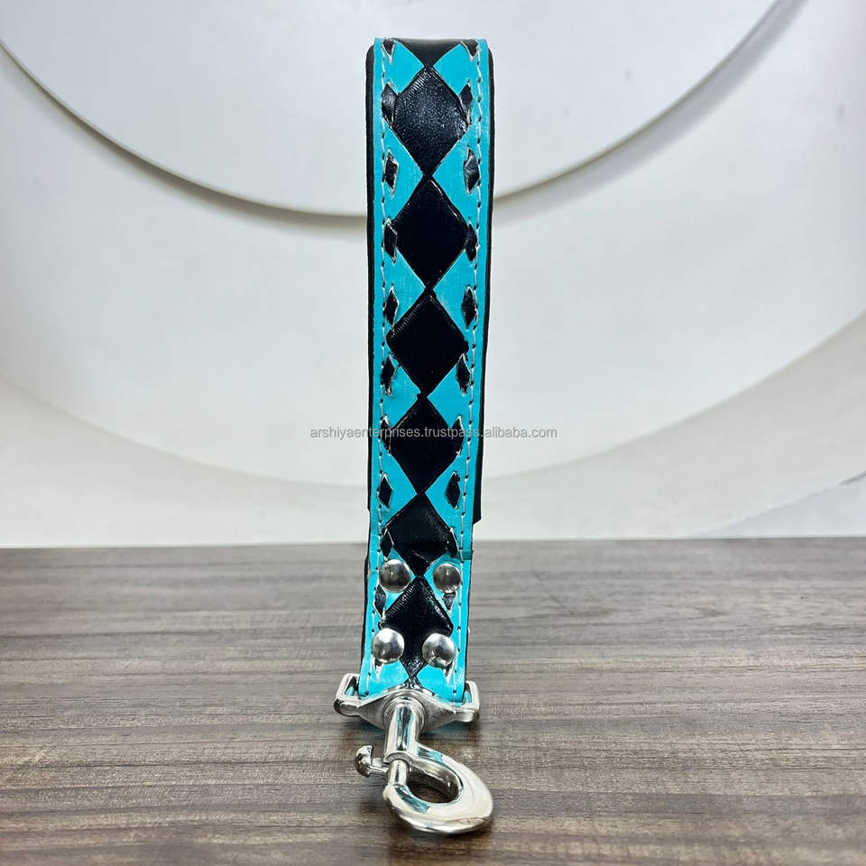 Product Name:Hand Tooled Checkered Leather Dog Leash Set