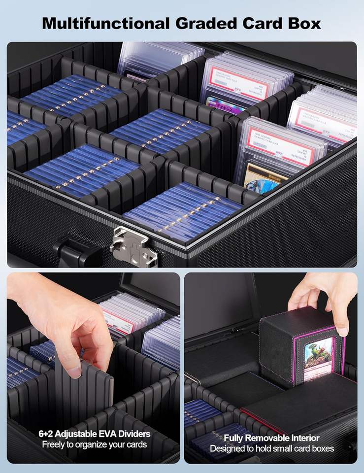Popular Hard Shell Sports Card Storage Case 9 Dividers Waterproof PU Button Closure Holder for Card Collection