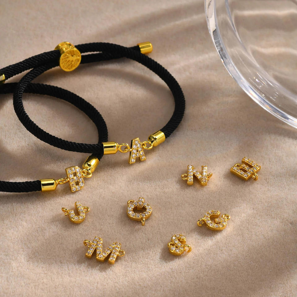 Popular Jewelry 26 Letters Cubic Zirconia Letters Adjustable Black Rope Chain Bracelet