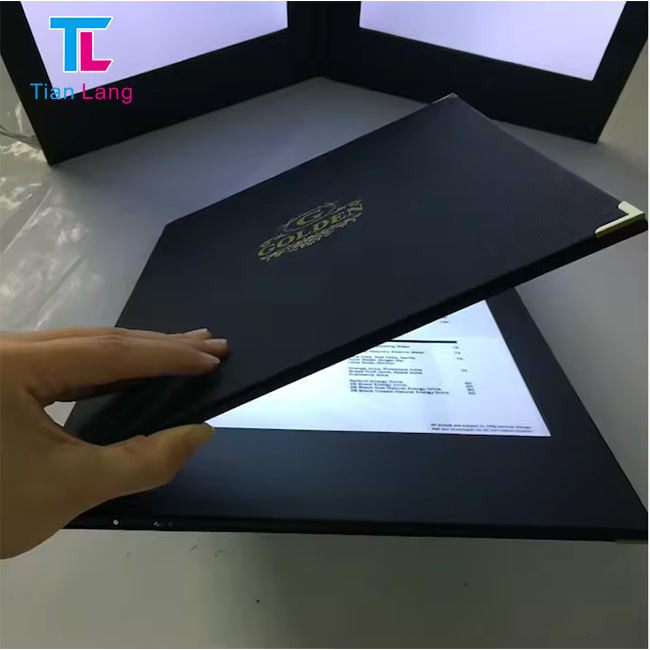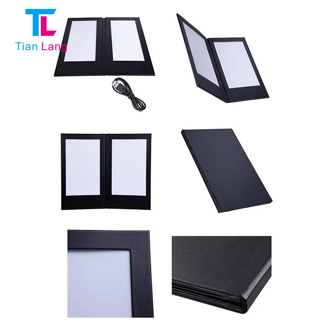 Rechargeable M8514 LED Menu Cover with LED Backlight Popular Illuminated Black Plain PU Advertising Light Boxes