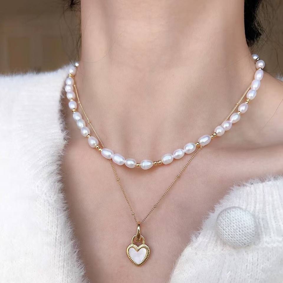 Popular Luxury Freshwater Pearl Necklace Double Sided 4-5mm Love Chain Daily Accessory Ornament Neckland Collection