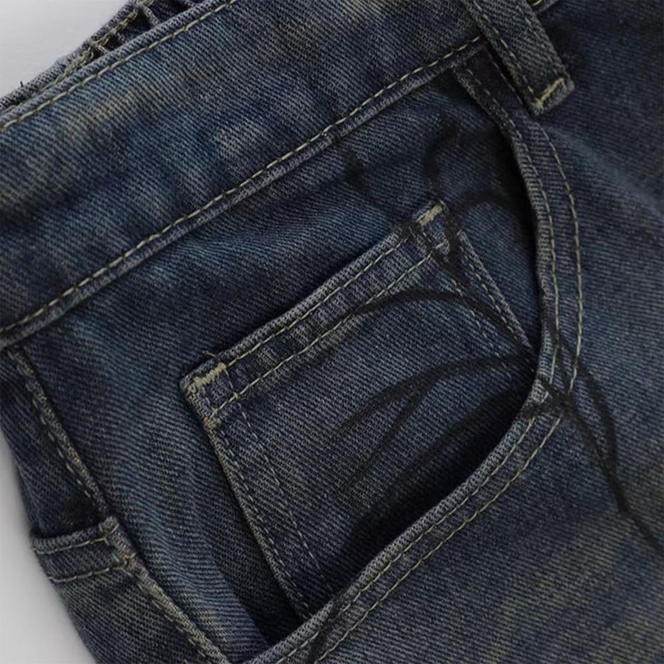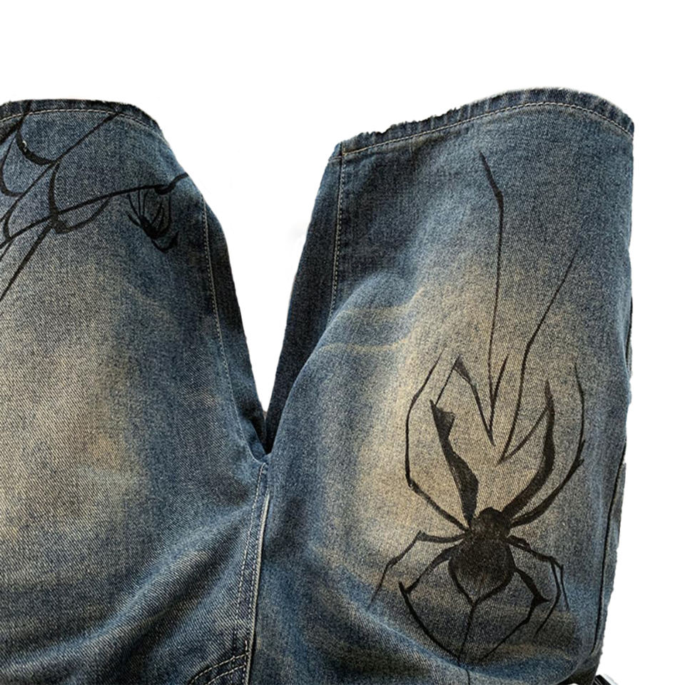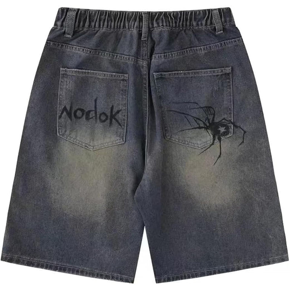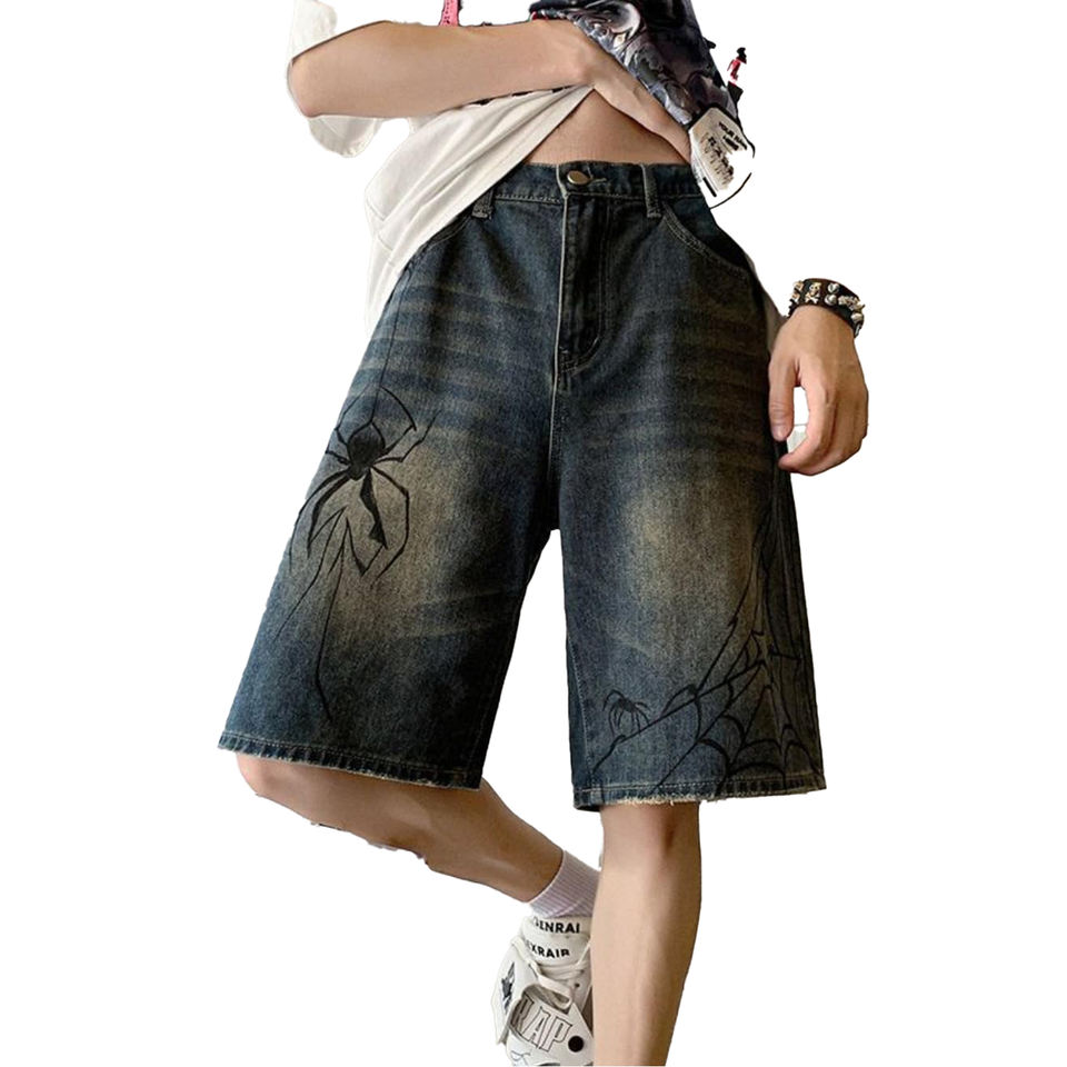 Popular Men's Custom Spider Web Graphic Denim Shorts dark wash denim casual shorts Gothic Streetwear Dark Wash Jean Shorts
