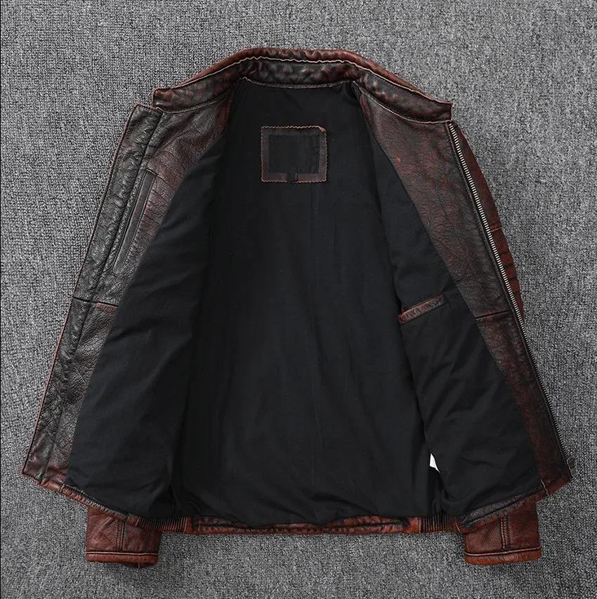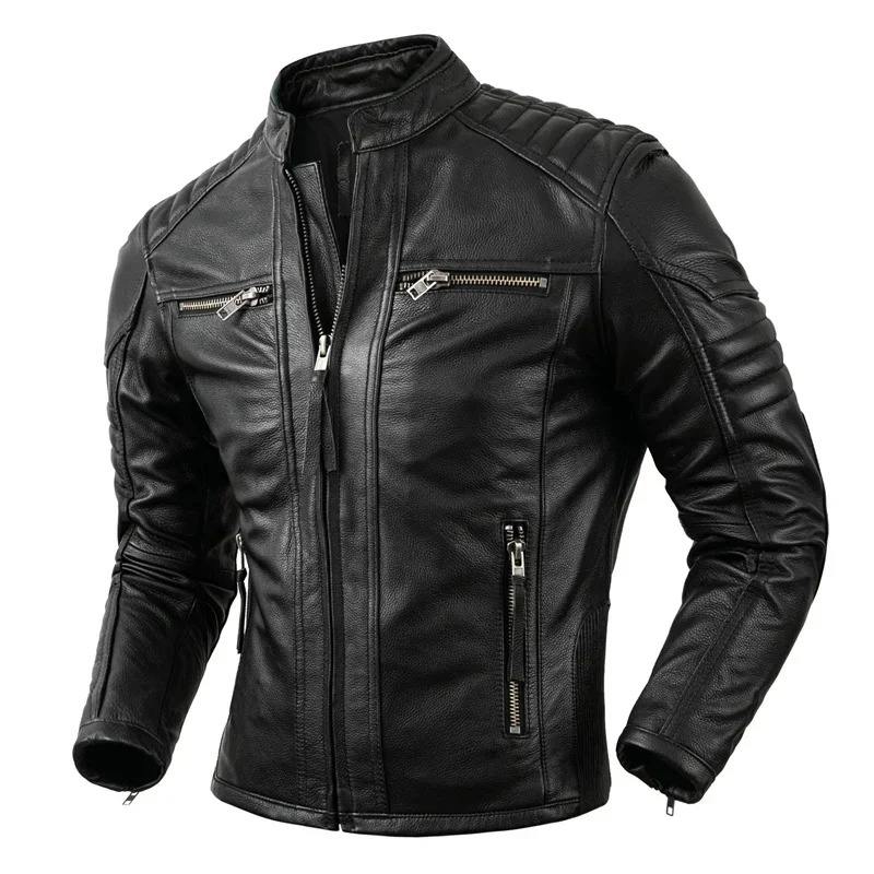 Popular Motor Style Vintage Men's Quality Genuine Leather Jacket Slim 100% Natural Cowhide Coat