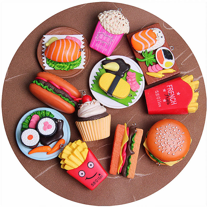 Popular New Japanese Mini Cute Eco-Friendly Artificial Sashimi Fries Burger Model Pendant DIY Jewelry Accessories