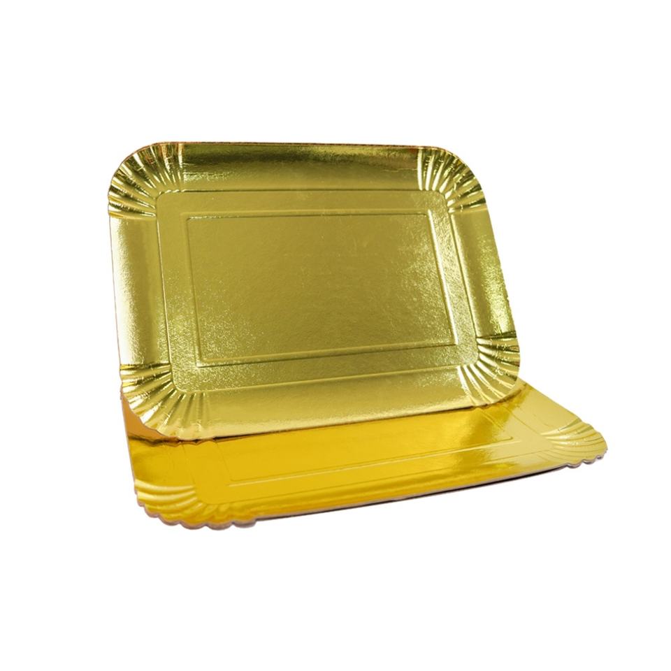 Popular Rectangular Golden Paper Cake Plate for Dessert Food