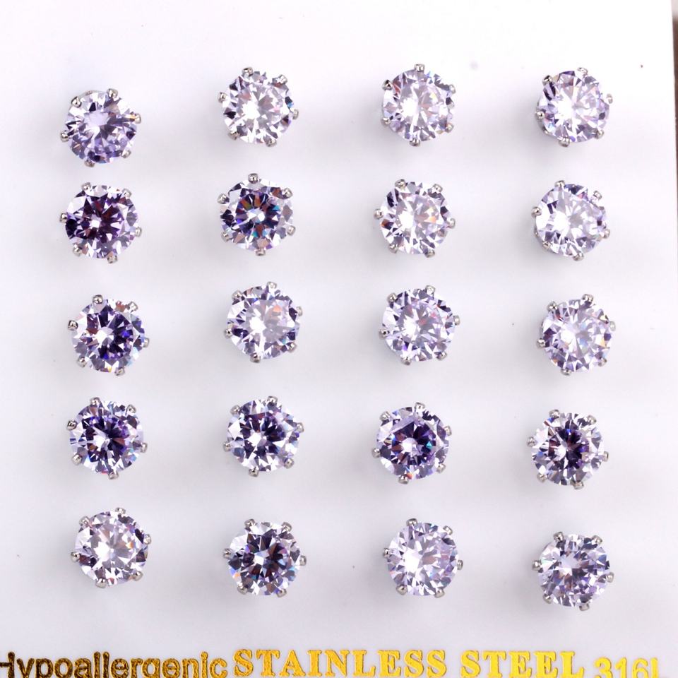 Popular Round Cut Zircon Stainless Steel Stud Earrings for Unisex