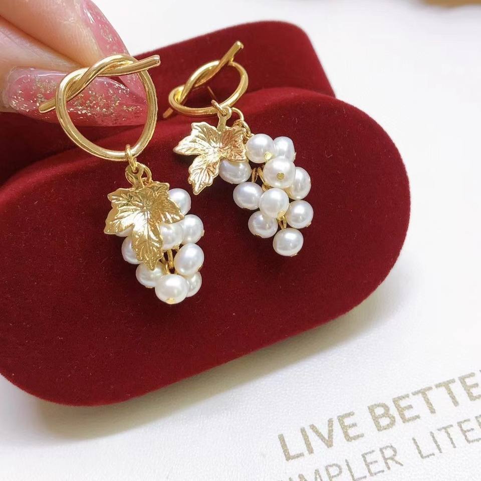 Popular S925 Silver Dangle Earrings 3-4 Freshwater Pearls with Grape-shaped Design Ear Needles Fashionable Stylish Accessory