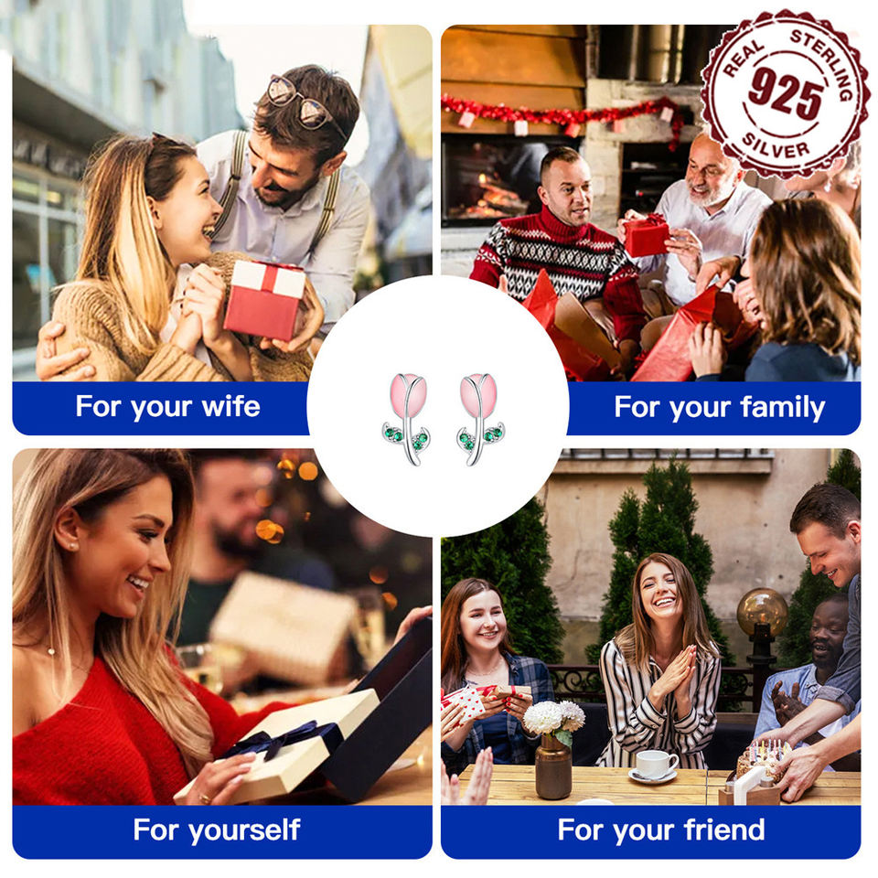 Popular S925 Sterling Silver Pink Epoxy Tulip Earrings - Fashionable and Versatile Earrings for European and American Women