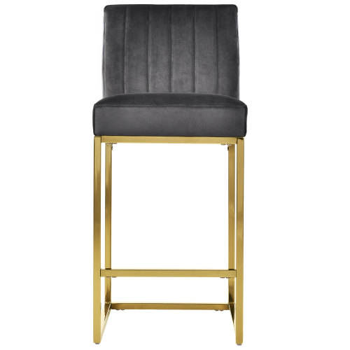Popular Sale Upholstered Cafe Restaurant Chairs Golden Legs Gray Velvet Backrest Bar Stools