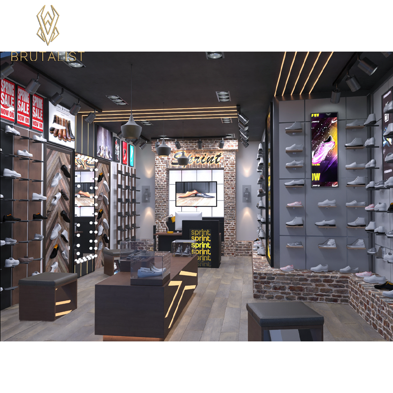 Popular Shoe Shop Interior Decoration Designed Wooden Customized Shoe Display Cabinet