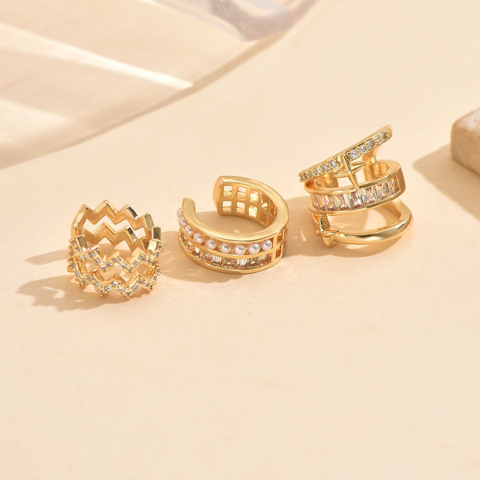 Popular Simple Trendy High-End Minimalist Copper Clip-on Earrings Set New Fashion INS-style Geometric Multi-style Women's Gift