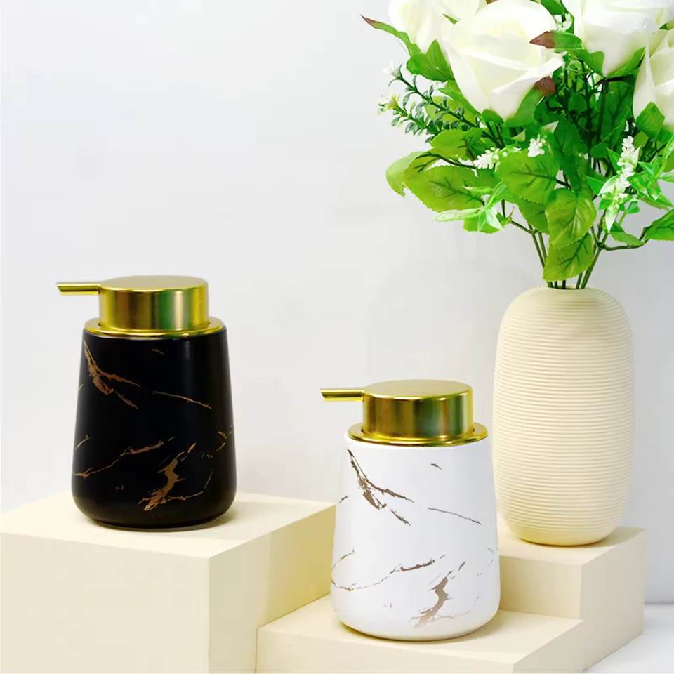 Popular Style Marble Decorative Refillable Soap Dispenser and Lotion Dispenser White and Black Marble Steel Pump