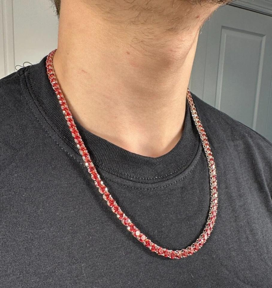 Popular Style Ruby Red Moissanite Diamond Tennis Chain With Gold Plated 925 Silver Iced Out Fine Jewelry For Birthday Gift
