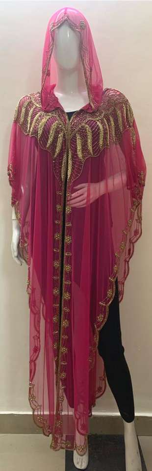 Luxury Style Woman Clothing Hooded Poncho Shrug T Shirt Front Open Heavy Hand Embroidery Work Lose Maxi Dress Party Sightseen