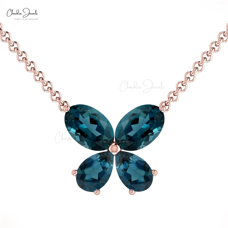 Popular Supplier London Blue Topaz Butterfly Necklace 1.2 CTW Gemstone Chain Necklace in 14k Pure Gold Buying Products Wholesale