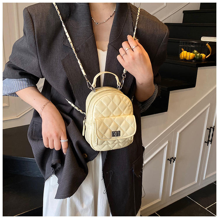 Popular Texture Mini Bag Female 2025 Summer New Simple Trend Diamond Lattice Embroidery Line Chain Ladies Girls Backpack