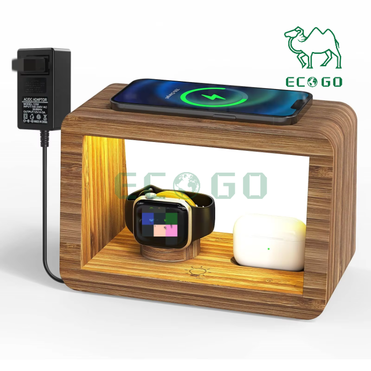Popular Wireless Charging Dock Station Mobile Phone Holder 4 in 1 Bamboo Wood Desk Organizer
