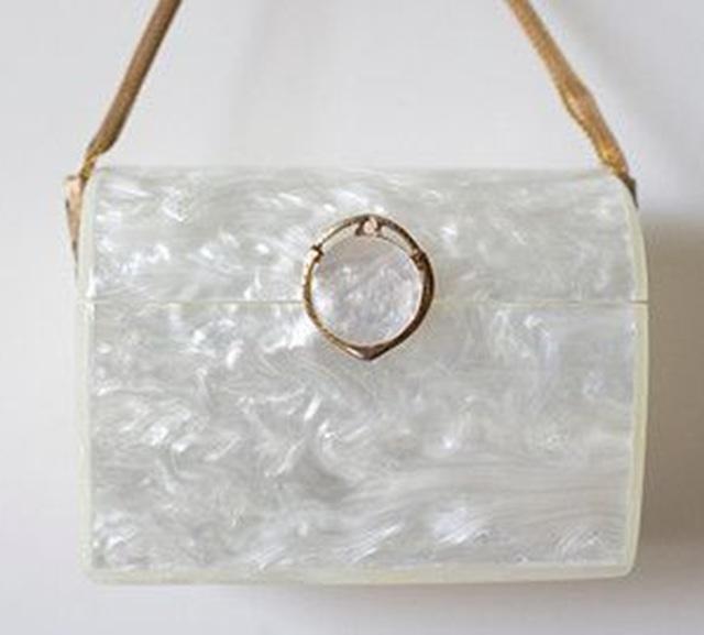 Popular Women White Pearl Epoxy Resin for Purse Bag Clutch Women Custom Ladies Handbags with Chains
