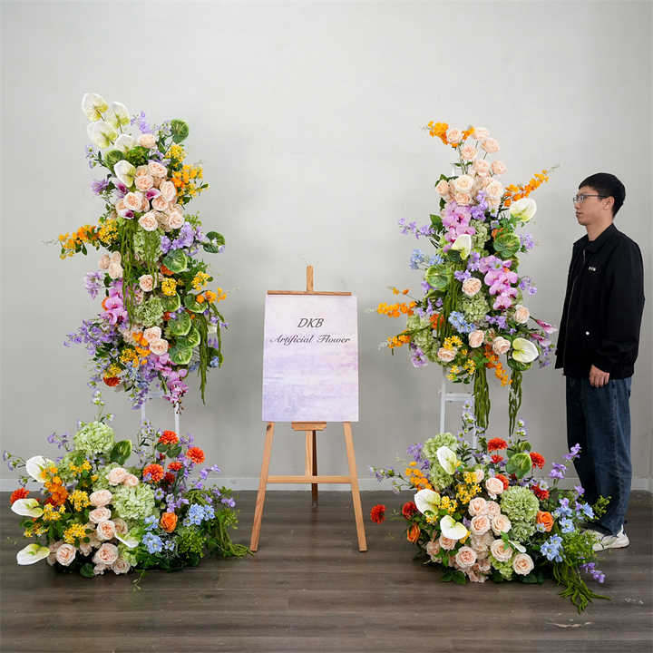 Popular colorful Flower Roses background With plants Artificial Wedding Backdrop Flowers Background decoration