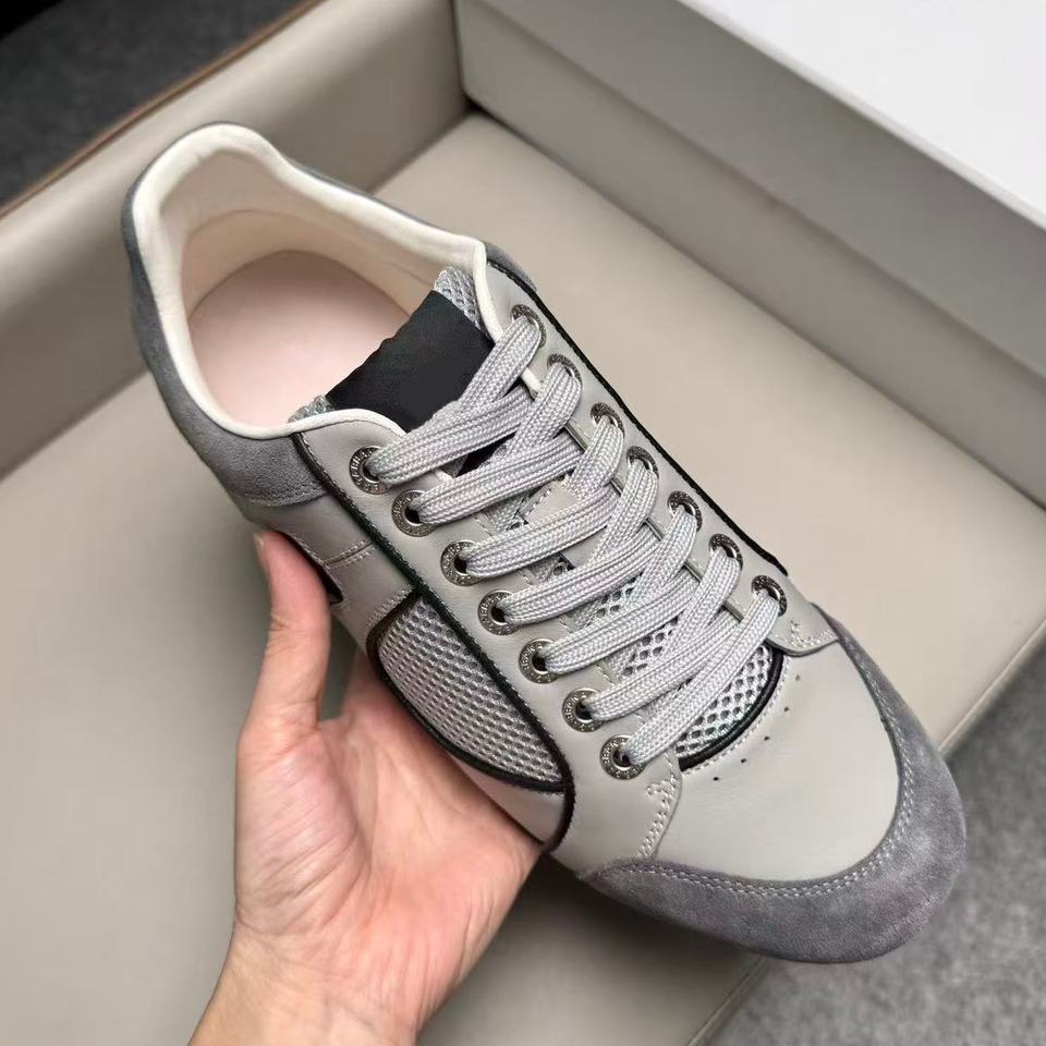 Popular Genuine Leather Midsole Lace-up Foundation Grey Surface Walking Shoes Luxury and Versatile New Model