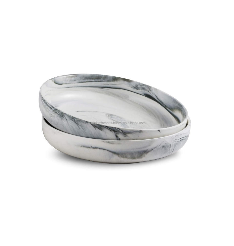 Porcelain Serving Bowl Set Ceramic Salad Pasta Set 2 Pack Grey Marble Stackable 10 Inch