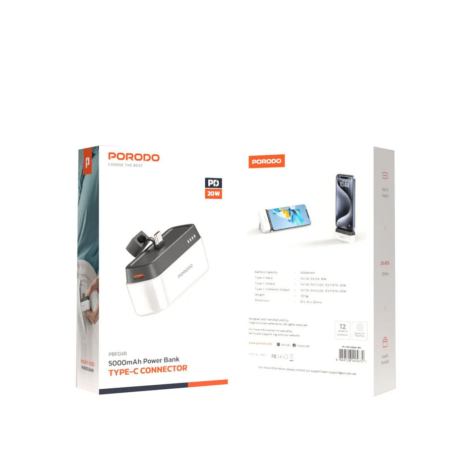 Porodo 5000mAh High Capacity Power Bank Ultra Slim Portable Fast Charging Station with Type-C Connector and 20W Output Power