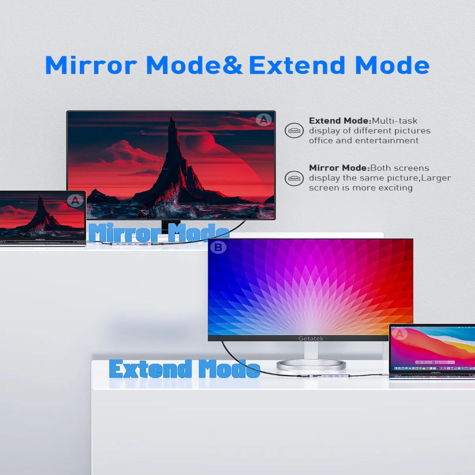 Porodo 7-Port USB-C Hub Blue 4K Dual USB-A Compatible with USB 2.0 Interface For &