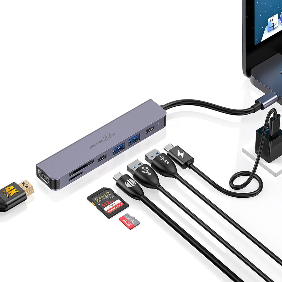 Porodo 7-Port USB-C Hub with 4K for HDMI & Dual USB-A 3.0 Interface Stock Product