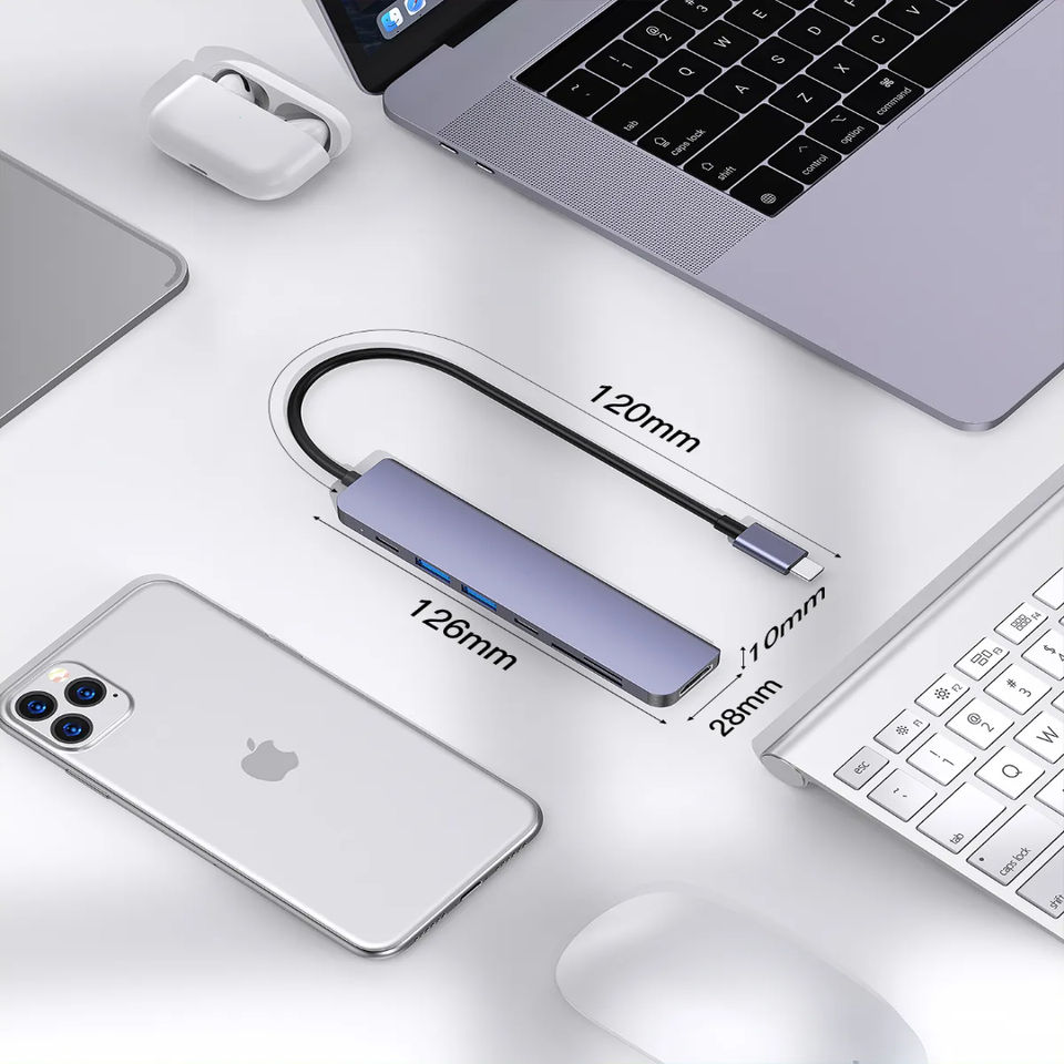 LOLLIBLOCKS USB HUB-6 in 1 USB C Hub with 4 Ports Aluminium Alloy Data Transfer Splitter for Computer 5GBPS Speed