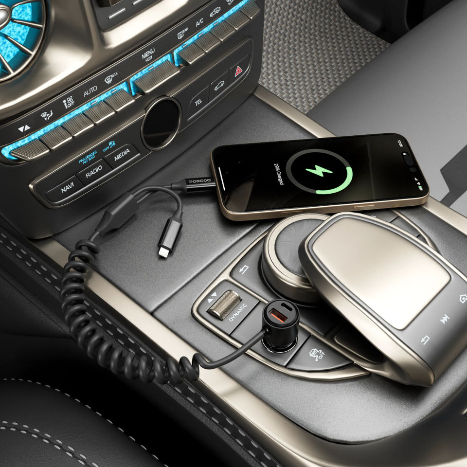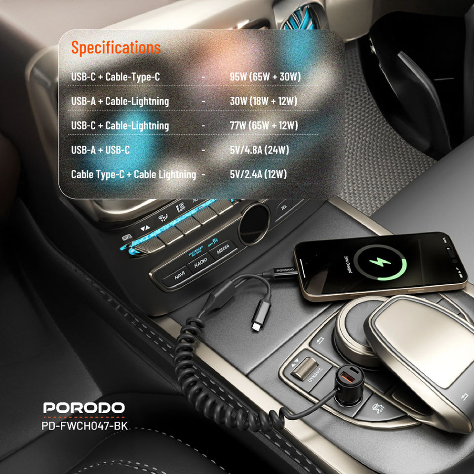 Porodo 95W Car Charger Transparent with Coiled Cable