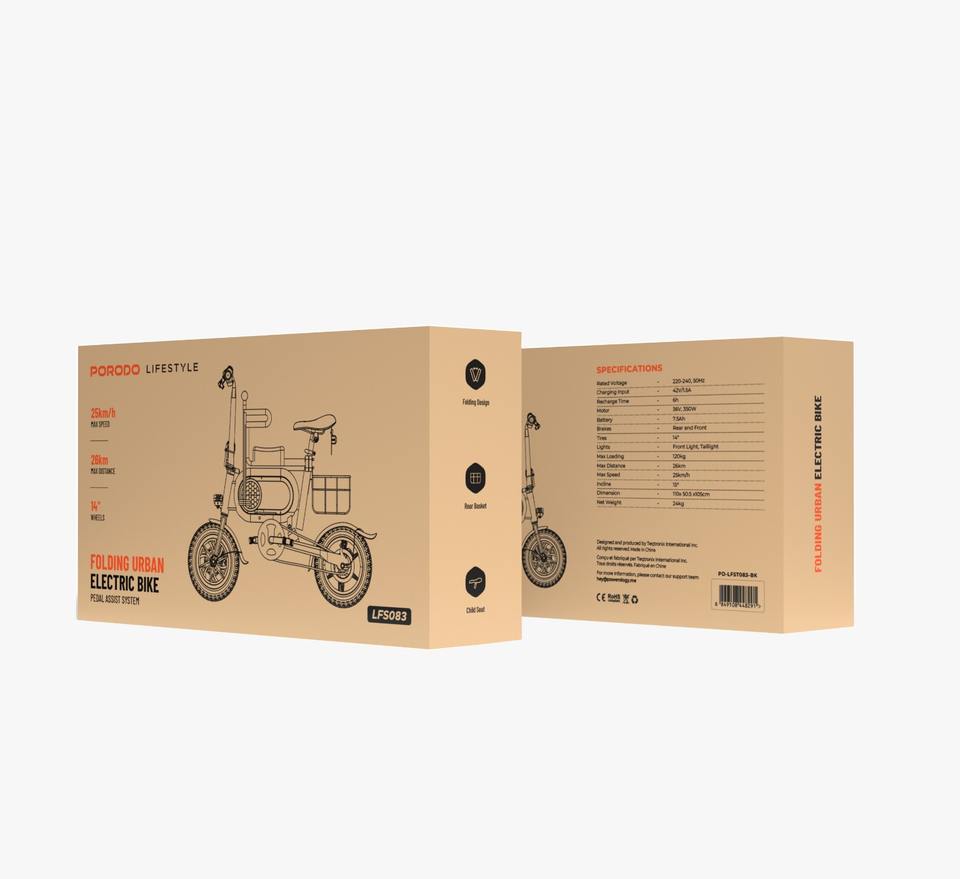 Porodo Lifestyle Urban Electric Folding Bike Aluminum Alloy Frame 36V Lithium Battery Eco-Friendly Modern Solution for Commuting
