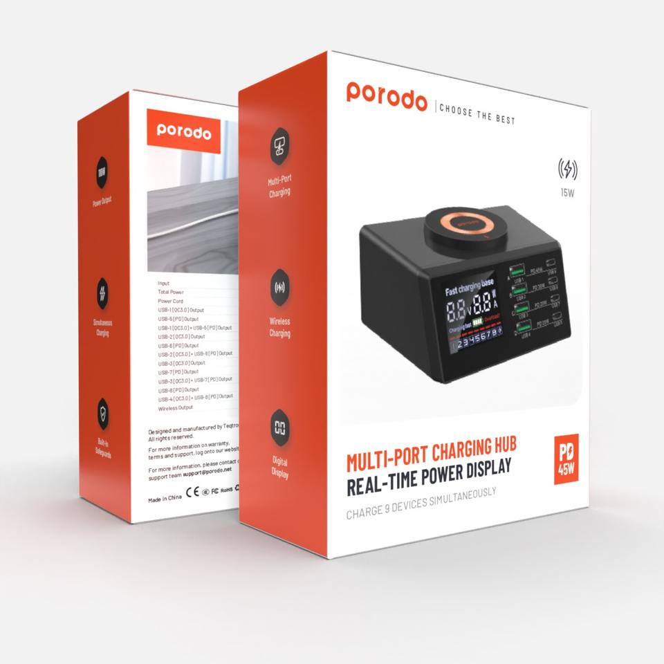 Porodo Multi-Port Charging HUB Real-Time Power Display Charge 9 Devices Simultaneously 1.2m
