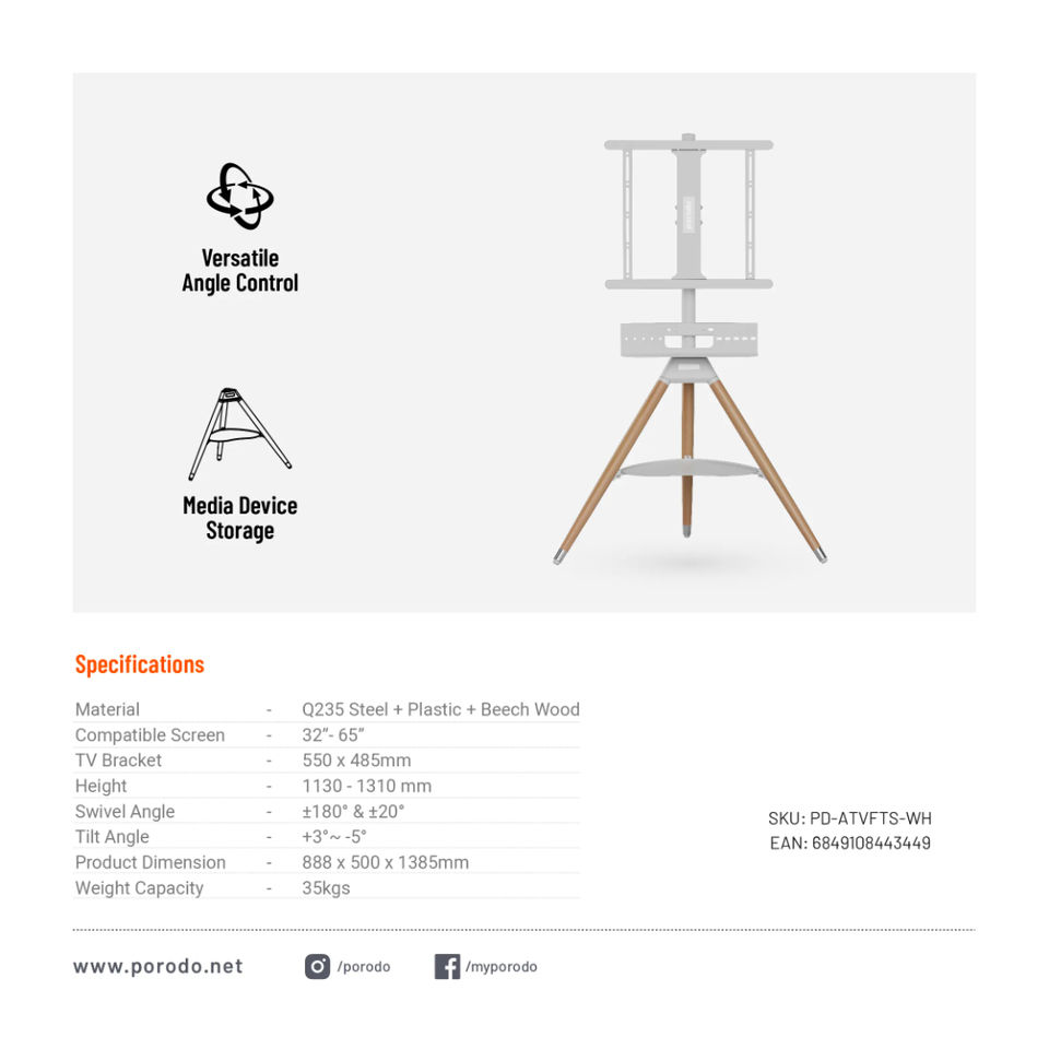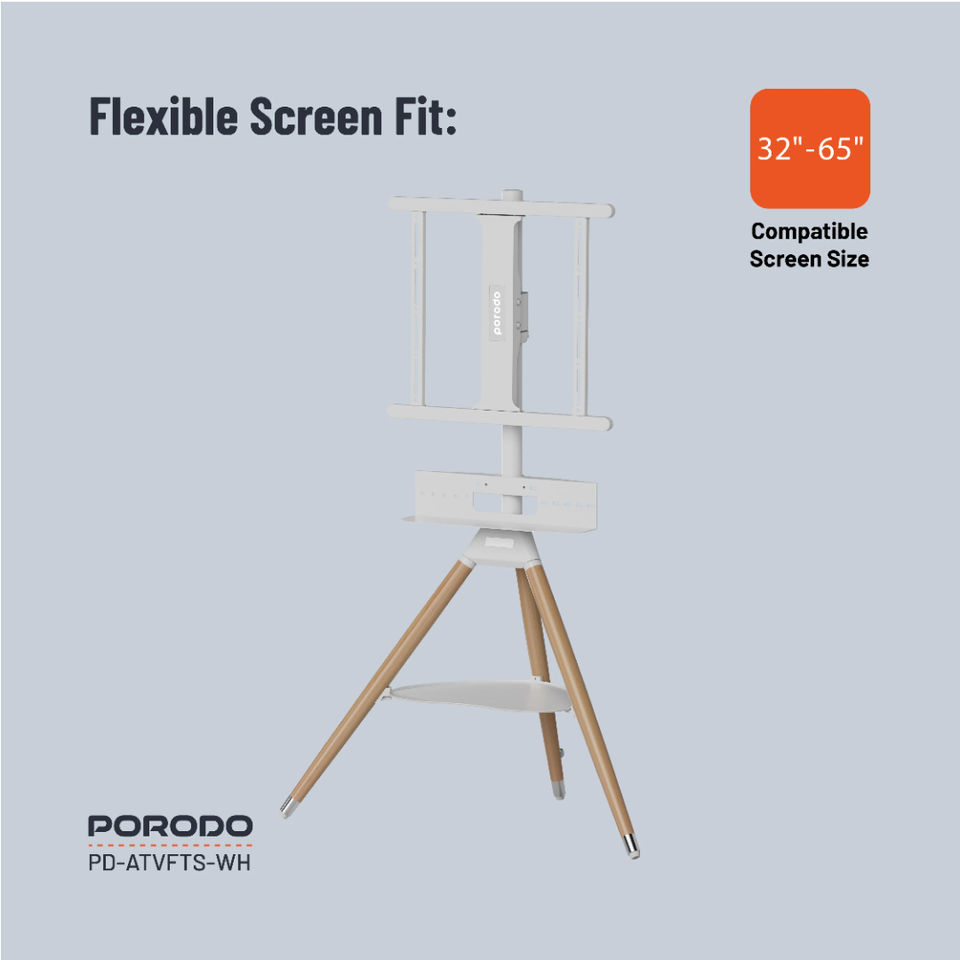 Porodo Modern Wooden Tripod TV Stand for Living Room Bedroom Dining Hotel Apartment Use