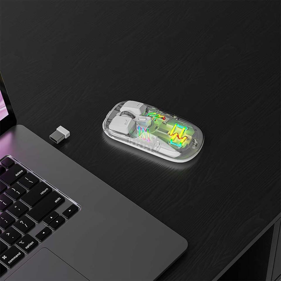Porodo Transparent Dual-Mode Wireless Mouse RGB Light and Magnetic Cover
