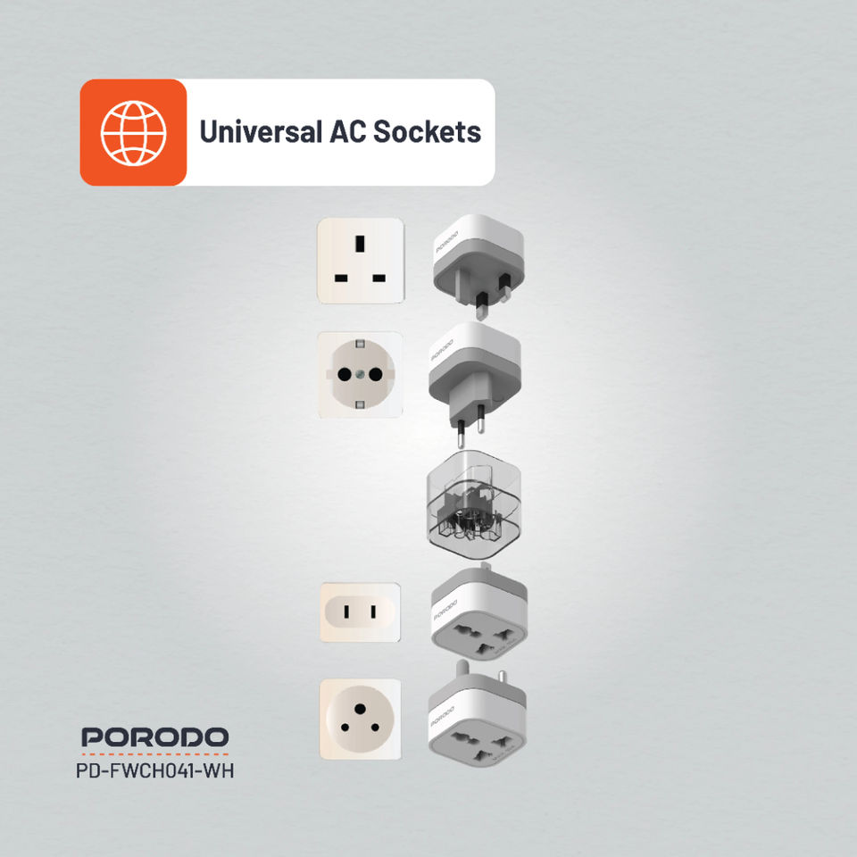 Porodo Universal AC Power Adapters Over 150 Countries Compatibility